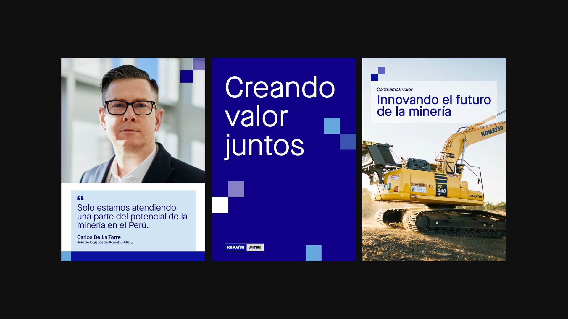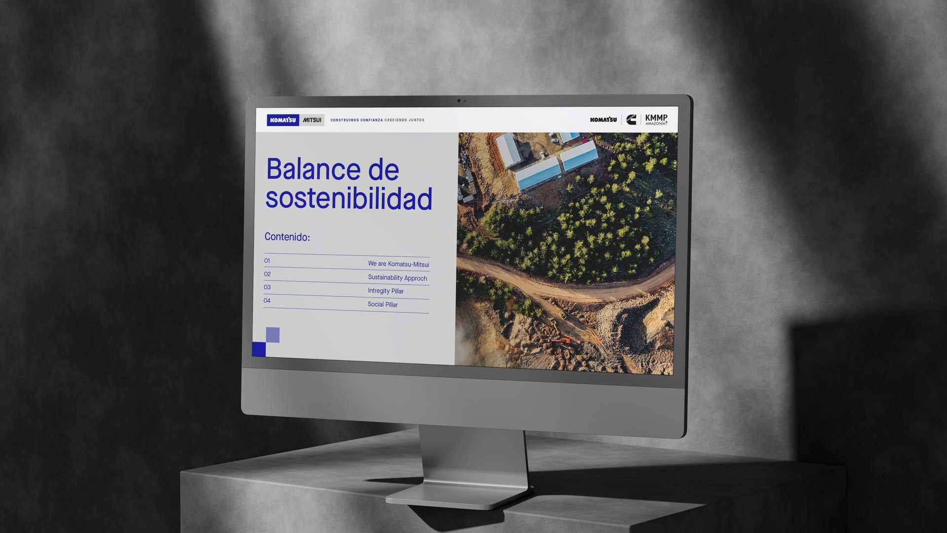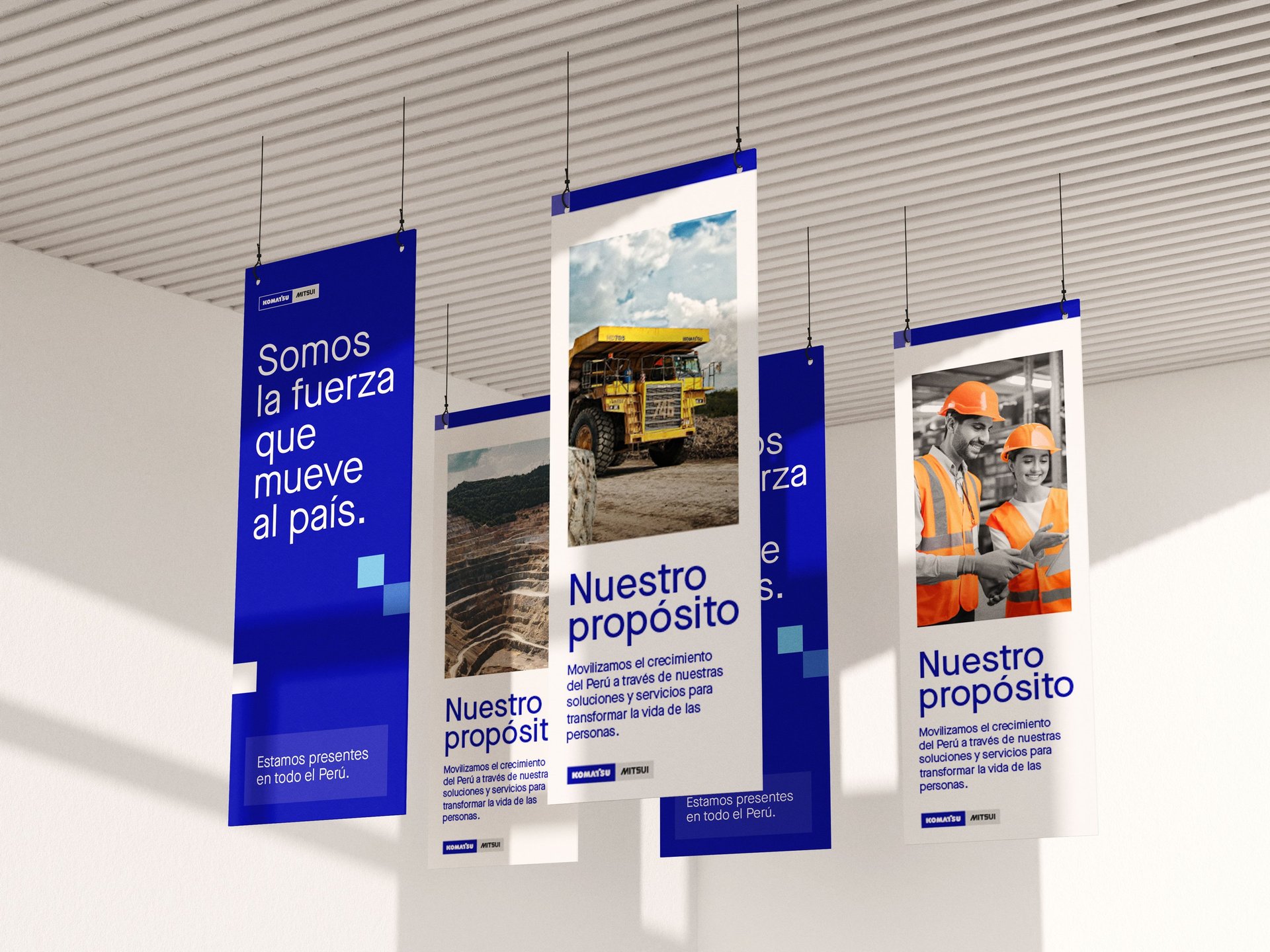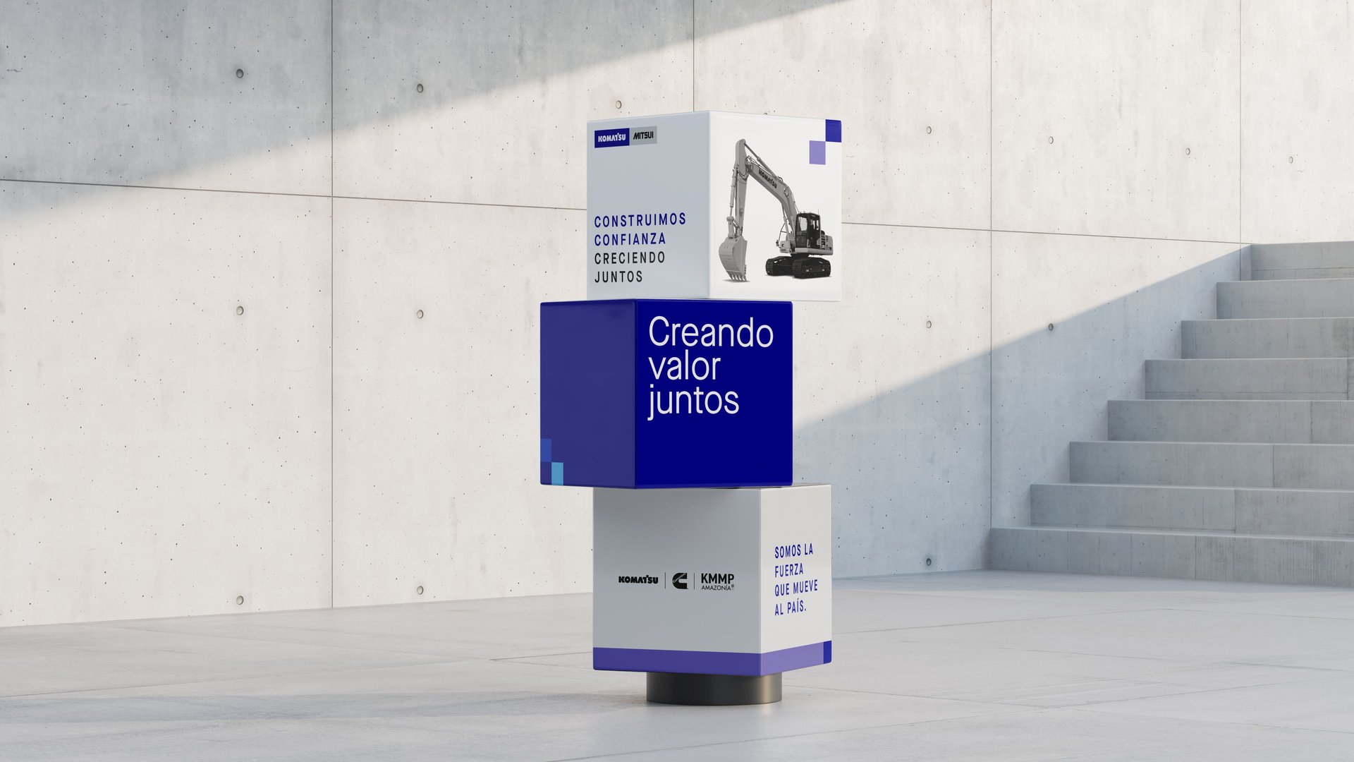 Komatsu-Mitsui Maquinarias Perú (KMMP), como líder en su sector, se encontraba ante una oportunidad estratégica para fortalecer aún más su imagen corporativa. Reconocimos la necesidad de unificar visualmente sus diversas líneas de negocio bajo una identidad sólida y coherente, proyectando así una imagen de fortaleza, confianza y unidad a todos sus stakeholders, tanto internos como externos. Nuestra estrategia se centró en articular visualmente la magnitud de su legado y en cultivar un profundo sentido de pertenencia entre sus más de 3000 colaboradores.
